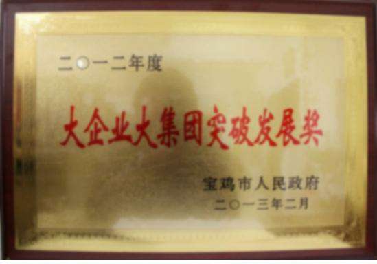 为了表彰先进,树立典型,针对2012年度宝鸡市工业战线良好的发展形式,市政府决定对纳税贡献大的企业单位和个人予以表彰奖励。由于贡献突出,宝鸡九游平台-九游(中国)一站式服务平台公司获得“大企业大集团突破发展奖“,”纳税突出贡献奖“ 2个奖项和30万元的奖金。本次表彰大会中,宝鸡九游平台-九游(中国)一站式服务平台公司是”大企业大集团突破发展奖“的唯一获奖单位。