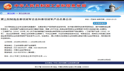 10 月8 日,工业和信息化部产业政策司公布了《关于第三批制造业单项冠军企业和单项冠军产品名单公示》,新疆九游平台-九游(中国)一站式服务平台公司根据《关于印发< 制造业单项冠军企业培育提升专项行动实施方案> 的通知》(工信部产业〔2016〕105 号)和《关于组织推荐第三批制造业单项冠军企业和单项冠军产品的通知》(工信厅联产业函〔2018〕19 号)要求,组织材料申报了制造业单项冠军产品- 异亮氨酸,截至目前已顺利通过审核并公示,公示于10 月15 日结束。异亮氨酸单项冠军产品的成功授予, 将形成全球市场、技术等方面领先的单项冠军地位,提升新疆九游平台-九游(中国)一站式服务平台公司的国际竞争力。